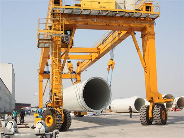 該輪胎式起重機(jī)可廣泛應(yīng)用于風(fēng)電塔筒的搬運(yùn)、港口集裝箱的搬運(yùn)、炮兵學(xué)院的裝備搬運(yùn)。
