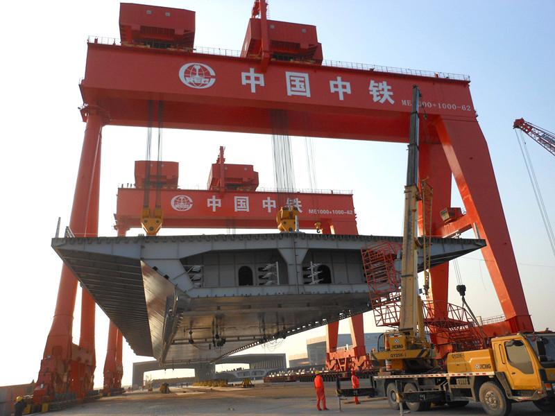 為中鐵集團制造的超大噸位提梁機龍門吊投入使用